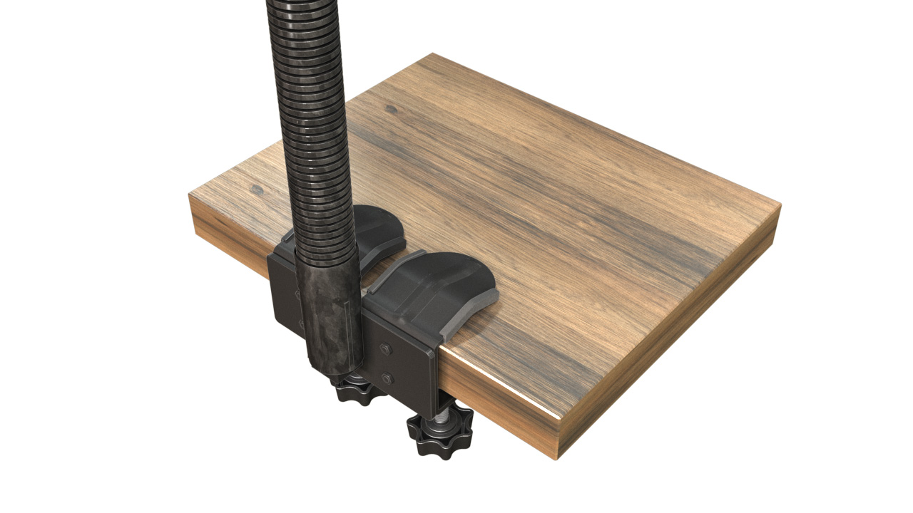 – Uchwyt posiada bardzo solidne szczęki mocujące dzięki nim zamocujesz stabilnie ramię do blatu , rurki czy lub innej powierzchni.