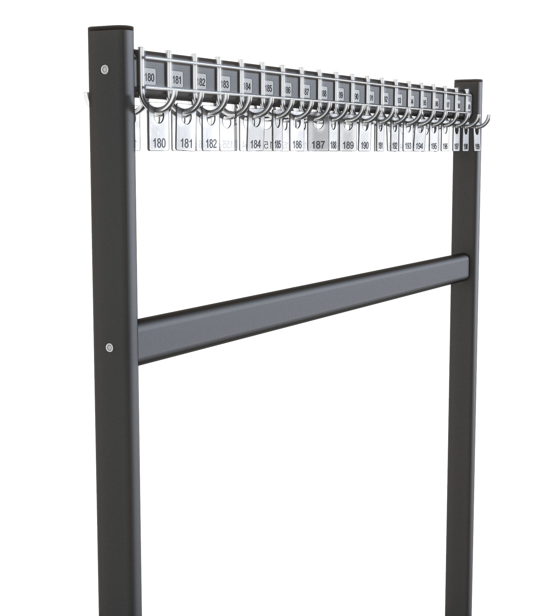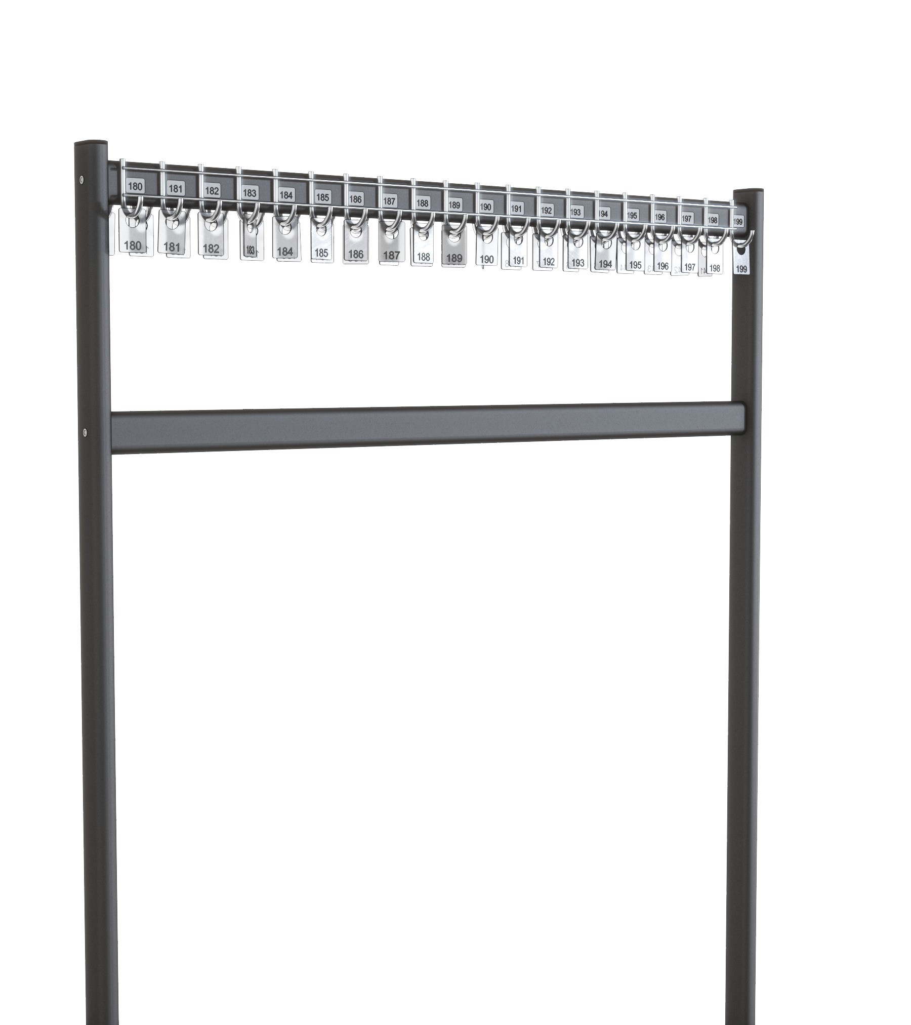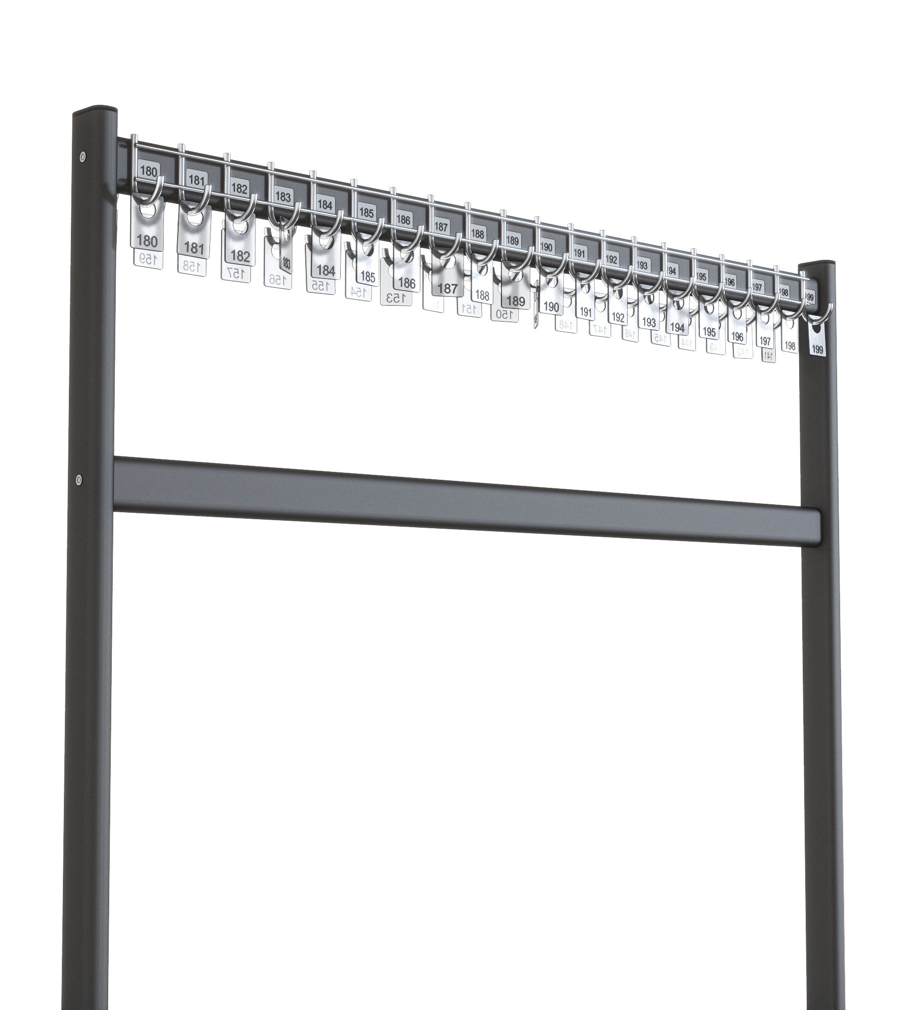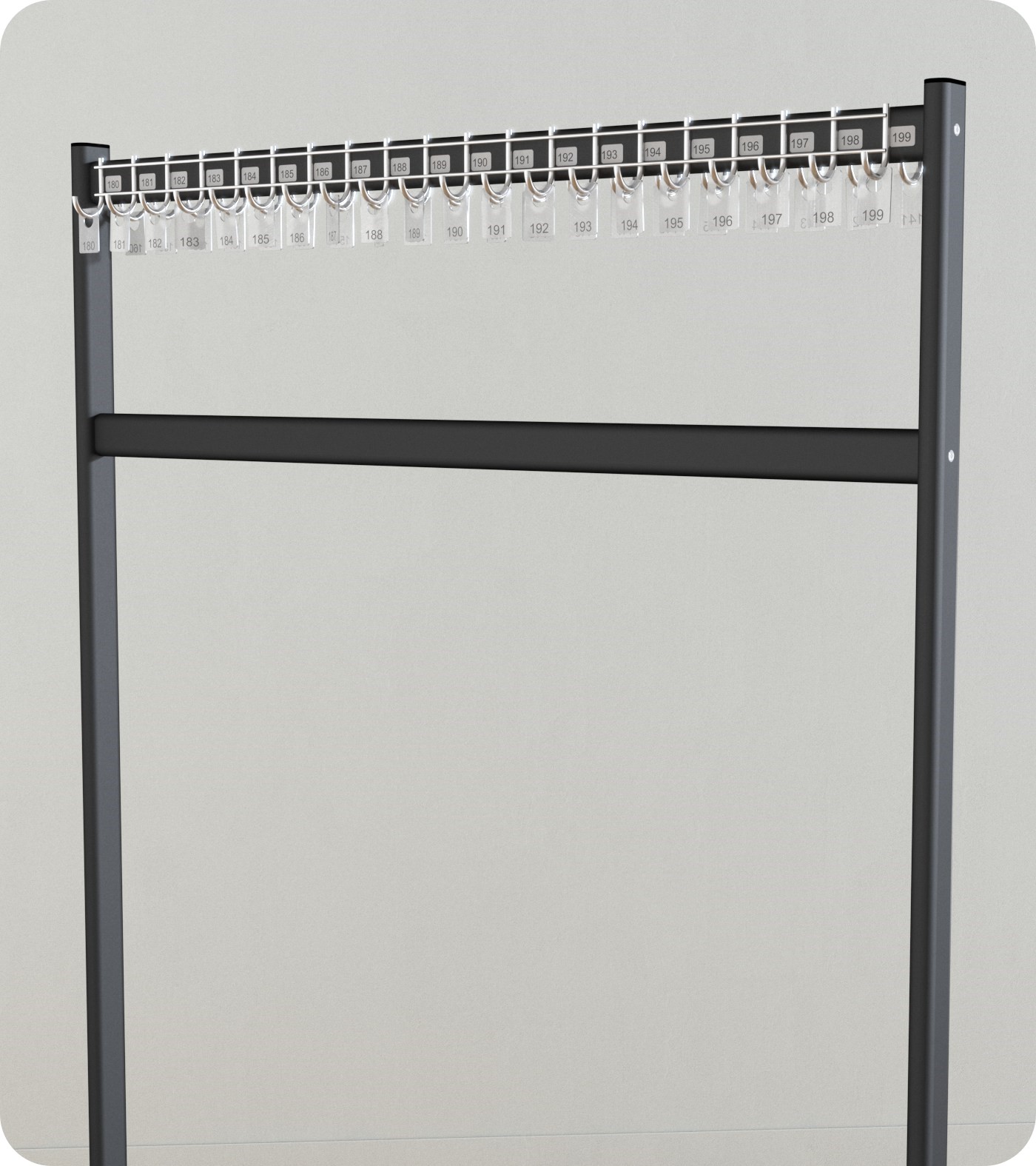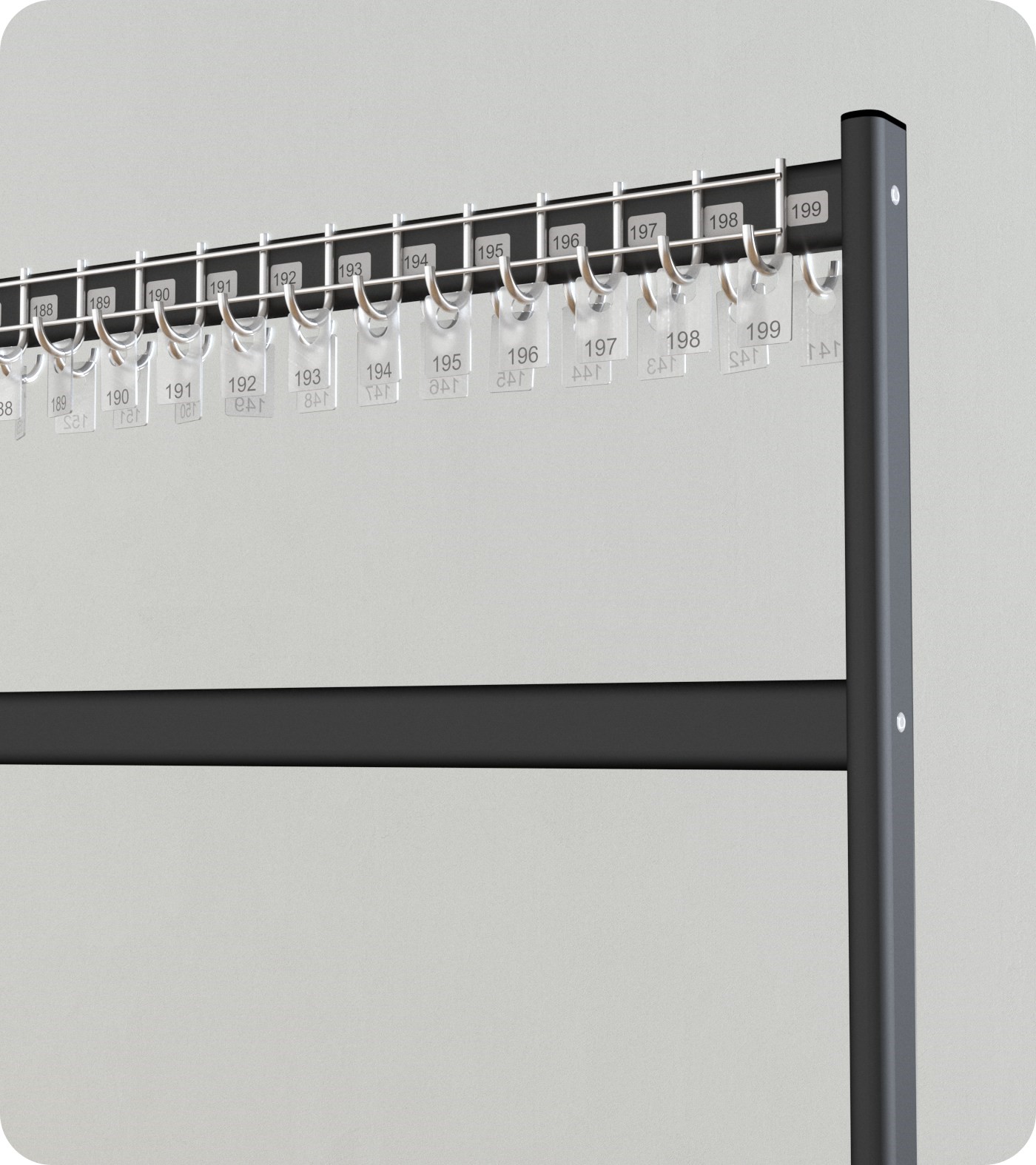- Belka z 40 hakami: Wieszak wyposażony jest w jedną belkę, która może pomieścić aż 40 haczyków. To wystarczająca pojemność do przechowywania wielu ubrań lub innych przedmiotów.