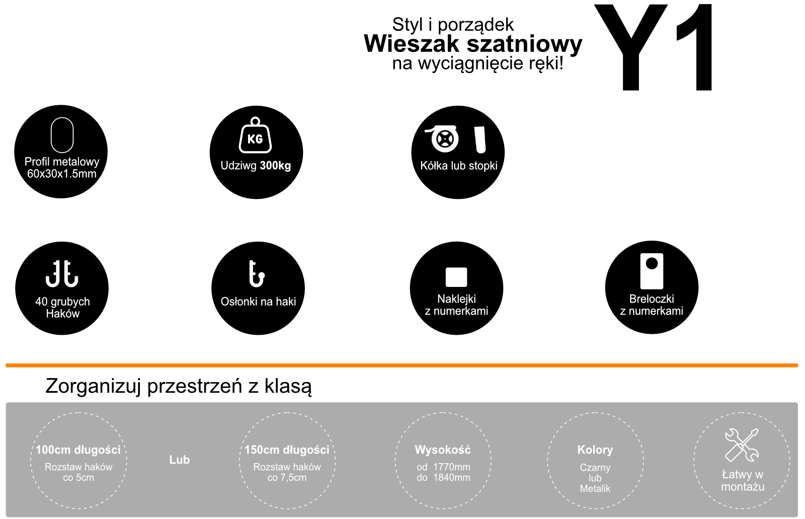 Profesjonalny wieszak Y1 40 Haków 300Kg udźwig to wyjątkowy produkt idealny do zastosowania w miejscach użyteczności publicznej, takich jak szatnie, szkoły, kina, restauracje, hotele i wiele innych. Jego cechy wyróżniające to wytrzymała konstrukcja , kilka kolorów do wyboru dwa rodzaje długości 100cm i 150cm