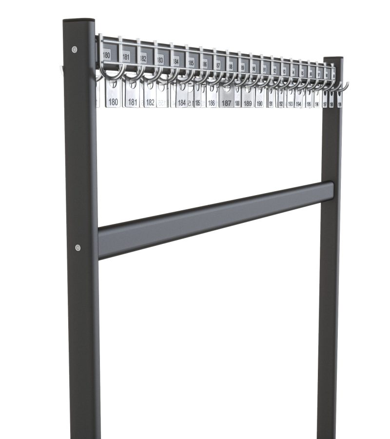 Wieszak szatniowy metalowy posiada jedną belkę z 40 grubymi hakami.