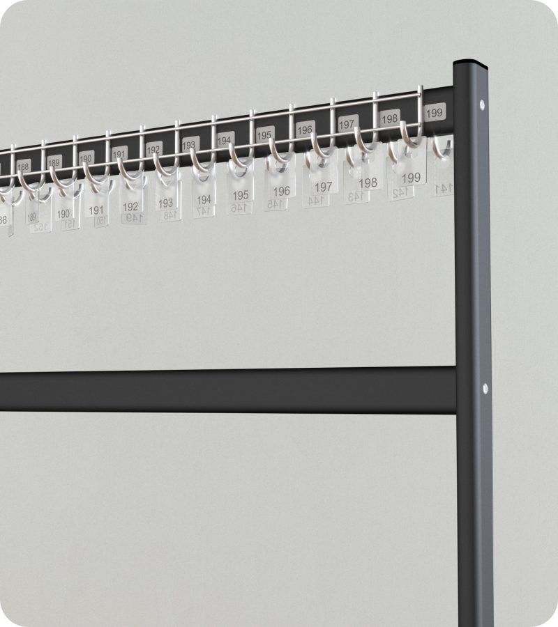- Dostosowanie do potrzeb klienta: Istnieje możliwość dostosowania wymiarów, kolorów (standardowo metalik lub czarny), ilości haków oraz rodzaju haków. Dodatkowo, istnieje opcja wyboru numerków na haczyki, co ułatwia identyfikację przechowywanych przedmiotów.