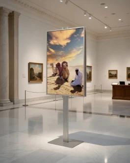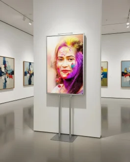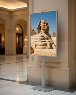 - - Anodowane aluminium stelaż aluminiowy. - Ramka odpinana mocowana na spineczki, umożliwiające dopięcie lub odpięcie w razie potrzeby od stelaża. - Stabilna podstawa. - Ramka plakatowa 2x B1. - Wysokość 170cm. - Składany stelaż. - Polski produkt.